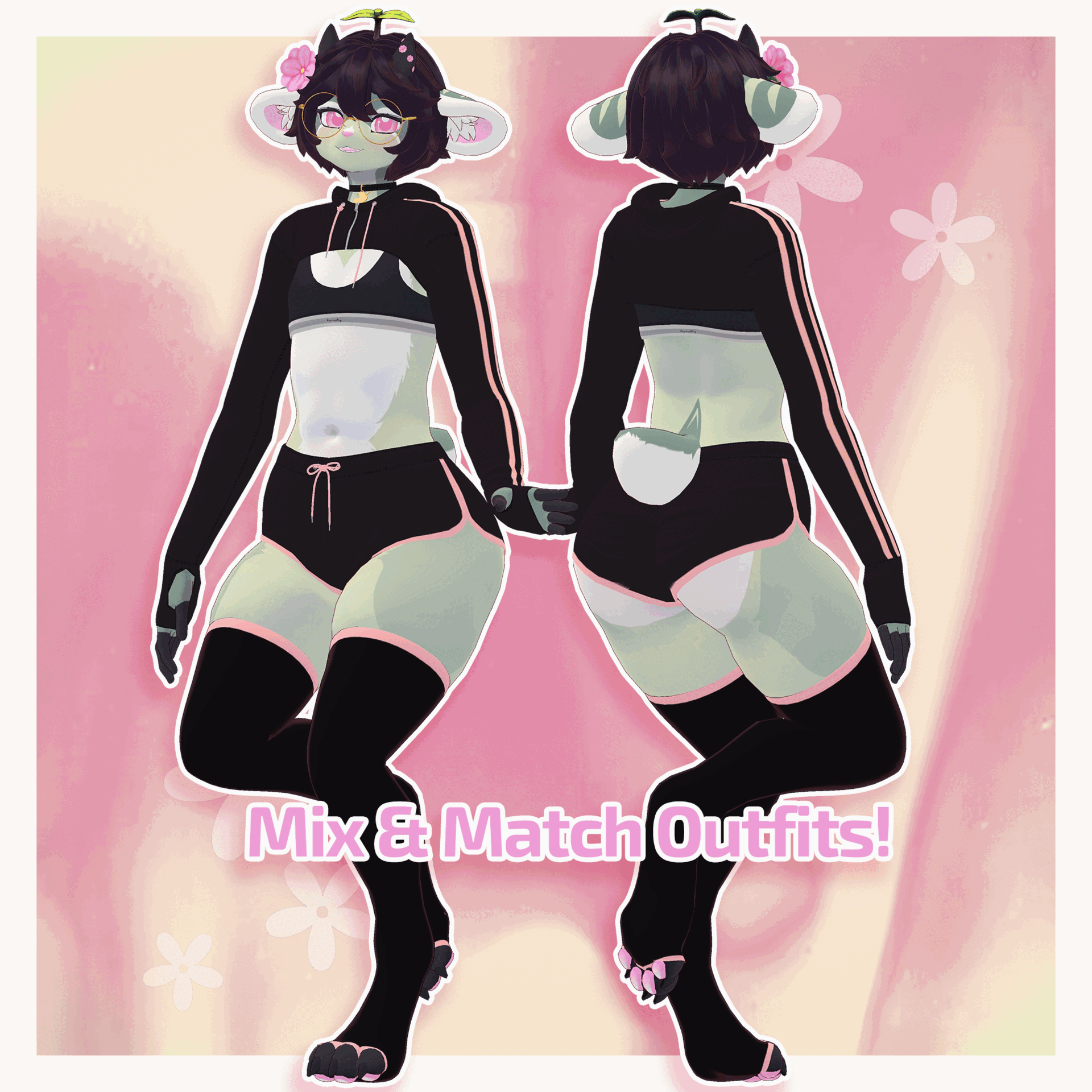 - Body Textures, Collar, Ears, Tail, Horns, Claws, Flower: Me
